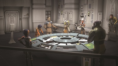Zu Beginn der Serie ahnt die bunte Rebellengruppe auf Lothal noch nichts davon, dass es ein Inquisitor auf sie abgesehen hat. In vier dreiminütigen Kurzepisoden, die zeitlich vor der ersten Staffel spielen, werden uns die Rebellen vorgestellt: Neben Kanan sind das Hera (Vanessa Marshall), die grünhäutige Twi’lek-Anführerin der Gruppe, Zeb (Steven Blum), der der Spezies der vom Imperium fast ausgerotteten Lasats angehört und Sabine (Tiya Sircar), die eine mandalorianische Rüstung trägt und nicht nur Graffitikünstlerin ist, sondern auch Expertin für ebenso effiziente wie kunstvolle Explosionen. Nicht vergessen sollte man den Droiden Chopper – schon allein deswegen weil er höchst eigenwillig und schnell beleidigt ist. Dann ist da noch der schon erwähnte Straßenjunge Ezra, der nicht nur durch sein Aussehen ein wenig an den Disney-Aladdin erinnert. Er stößt im Laufe des Pilotfilms zur Rebellencrew, deren mobiles Hauptquartier die „Ghost“ ist, ein kleiner, von Hera kommandierter Frachter. (Leider befinden sich die vier Kurzepisoden im Bluray-Set auf der zweiten Disc, obwohl sie zum Einstieg in die Serie gedacht sind.)